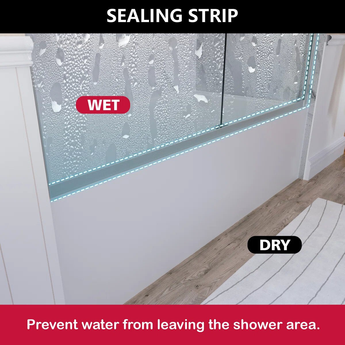A 55" - 59" W × 60" H semi-frameless double sliding bathtub door brings a modern appearance to your bathroom. It uses 1/4 inch tempered glass and has passed ANSI Z97.1 certification to ensure safe use and installation. The sturdy and corrosion-resistant 304 stainless steel towel bar provides additional storage. The multifunctional installation of opening the door to the right or the left can meet your needs or habits. The glass surface has a protective coating to reduce the residue of water, soap foam, and dirt, reducing cleaning time by up to 90%. Available in three color options: Matte Black, Brushed Nickel, Chrome. Our shower doors aim to bring a unique glow to our customers' bathrooms, making it a wonderful choice.
