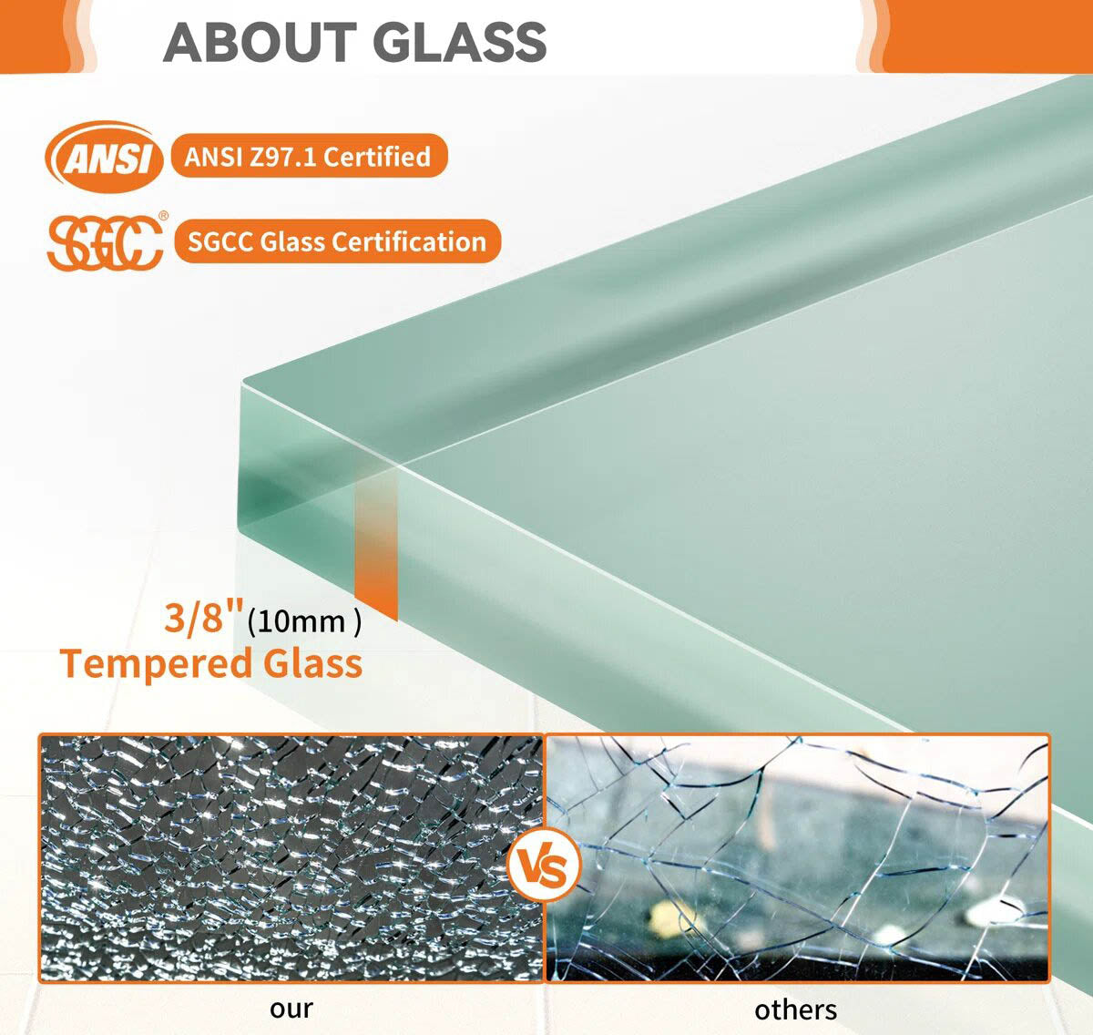 - 3/8" (10mm) SGCC Tempered Glass – Thick, durable glass provides enhanced safety, stability, and crystal-clear visibility for everyday use.