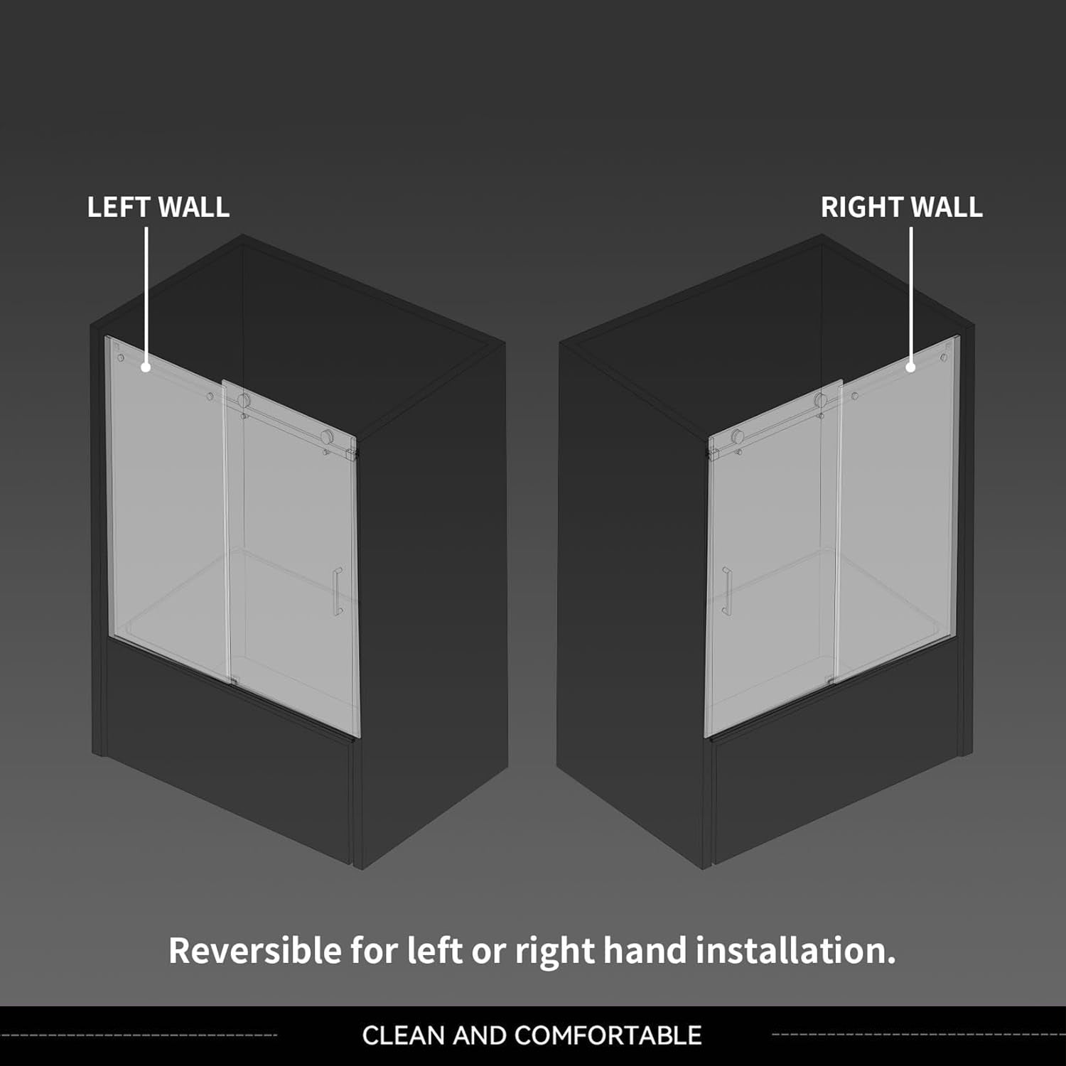 The reversible design allows for left- or right-side opening to suit your bathroom setup. Plus, up to 2/3" adjustment accommodates out-of-plumb walls.