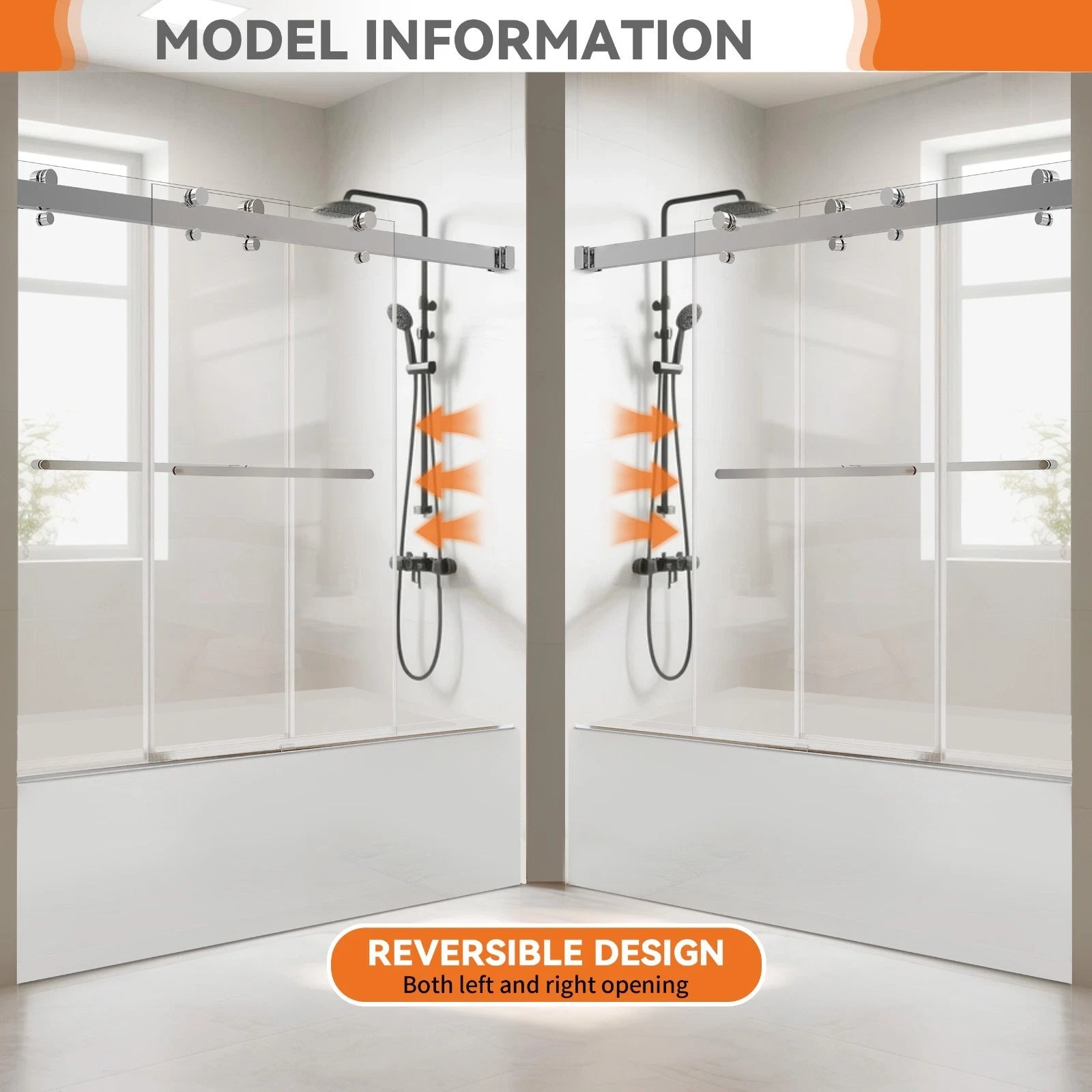 - Compatible with 56-60 Inch Openings: Flexibly fits standard shower areas with widths ranging from 56 to 60 inches, ensuring easy installation. The bidirectional smooth sliding design optimizes space utilization and adapts to various bathroom layouts. Integrated dual towel bar handles combine practicality and aesthetics