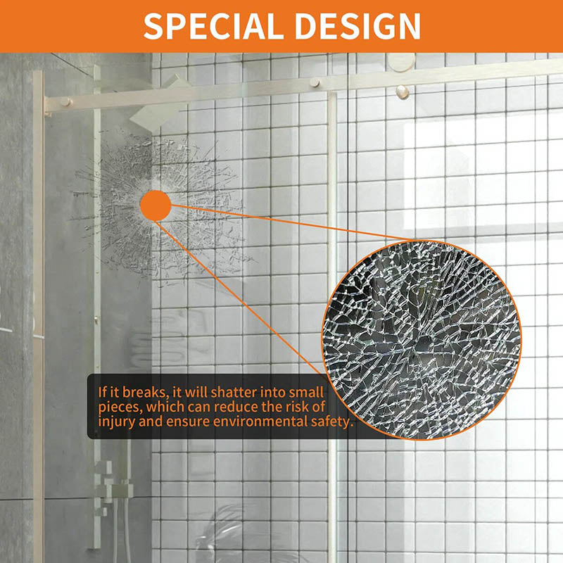 Tempered Safety Glass: 5/16" (8mm) clear tempered glass with ANSI Z97.1 certification for durability and safety.